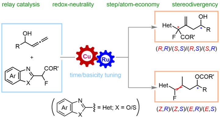 Our paper entitled “Cu/Ru Relay Catalysis Enables Functionalization of Allenic Alcohols with Stereodivergence and Skeleton Diversity” has been accepted for publication in J. Am. Chem. Soc. Congratulations to Kui Tian!